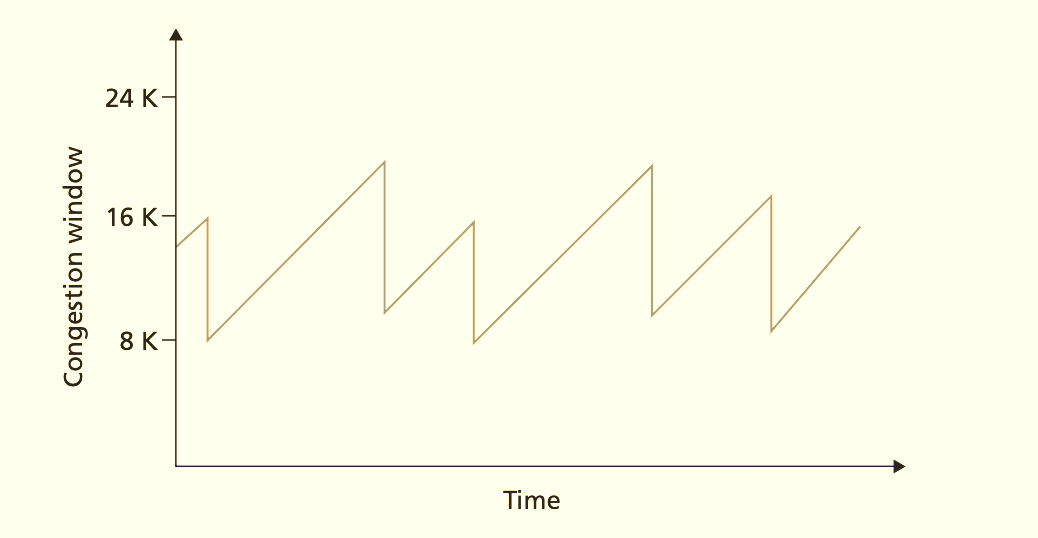 cwnd = 1 MSS(Maximum Segment Size, typically 1460 bytes). For each ACK, increasecwndby 1 MSS. This doubles the window every RTT to find the rough capacity quickly.Congestion Avoidance: Once