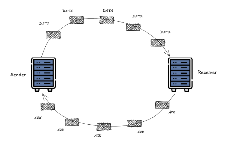 The ACK is your sensor. Each acknowledgment tells you that a packet has left the network, freeing one slot in your window. The arrival rate of ACKs is the network’s delivery rate. The time between sending a packet and receiving its ACK is the RTT, which includes propagation delay plus any queueing delay. The entire challenge of congestion control is to infer the path’s BDP from this single, noisy sensor.