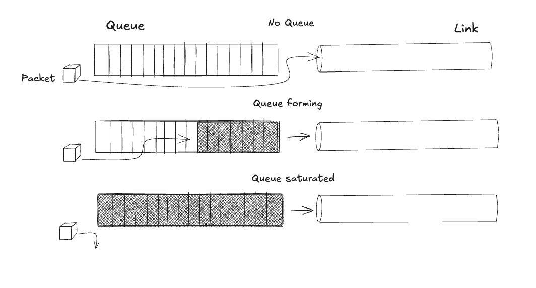 This value represents the ideal amount of data to keep in flight: enough to keep the bottleneck link fully busy, but not enough to create a queue. Any packet beyond the BDP sits in a buffer, adding delay without increasing throughput. A queued packet is wasted capacity.