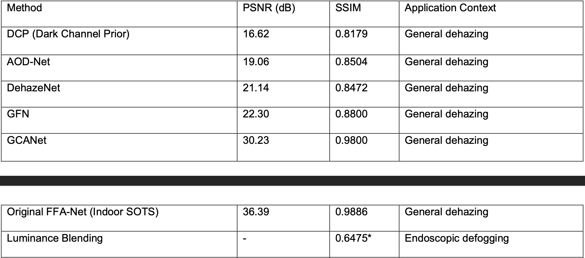 Traditionally, solutions either require heavy hardware modifications or deep learning-based setups. But I am focusing on a more “classical” image-processing route here: luminance blending. It doesn’t demand extensive training data, and it’s flexible enough to adapt to different haze densities. I wanted to see if a straightforward pipeline could deliver near-real-time clarity, meaning I could apply this to live video frames with minimal latency, well enough for many routine procedures.